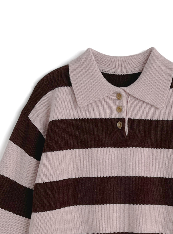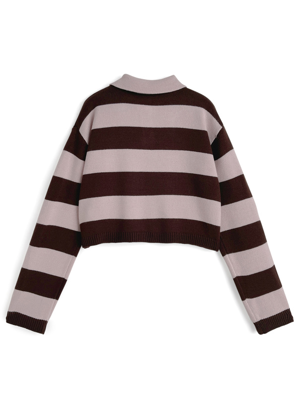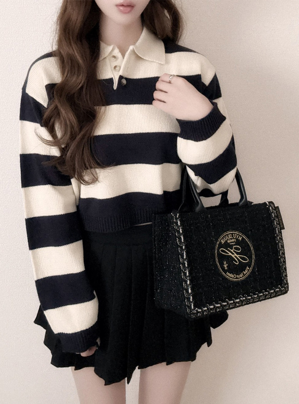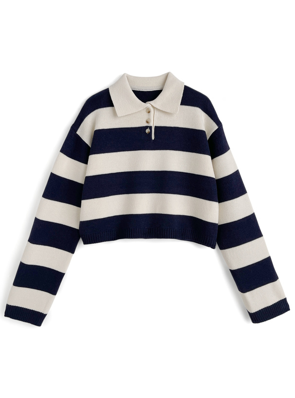 ワイドなボーダー柄で存在感のあるニットトップス。