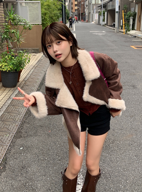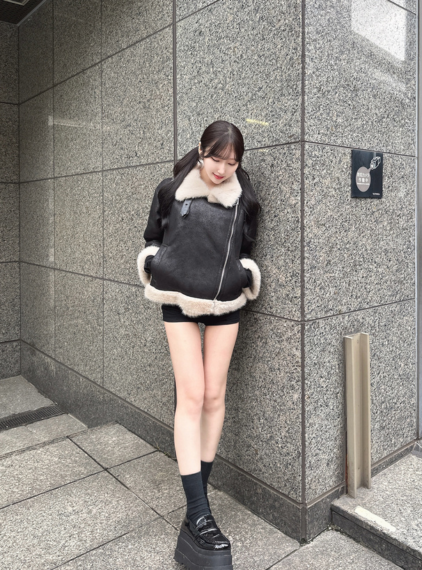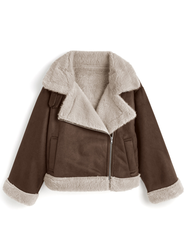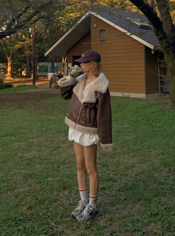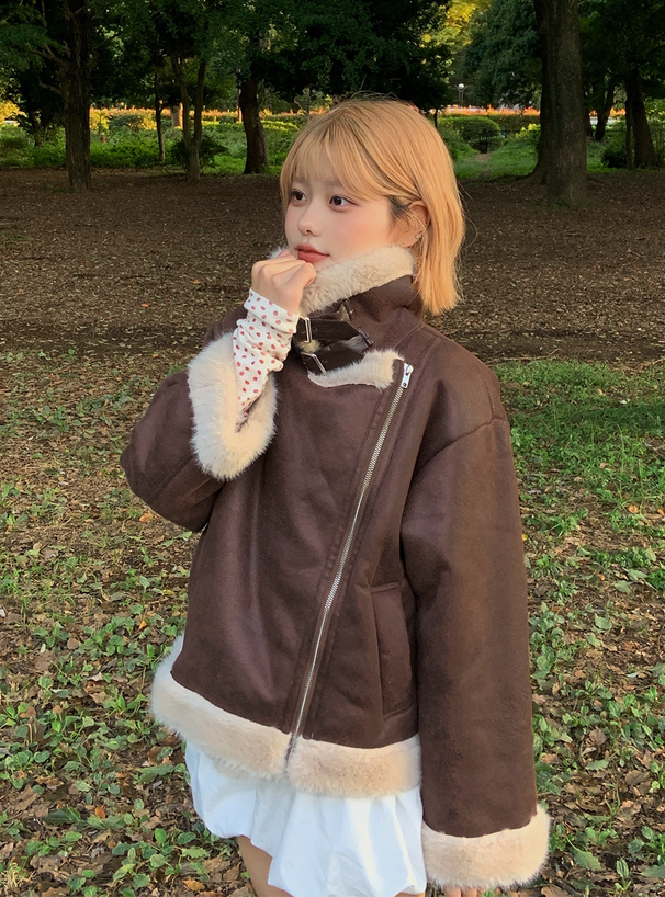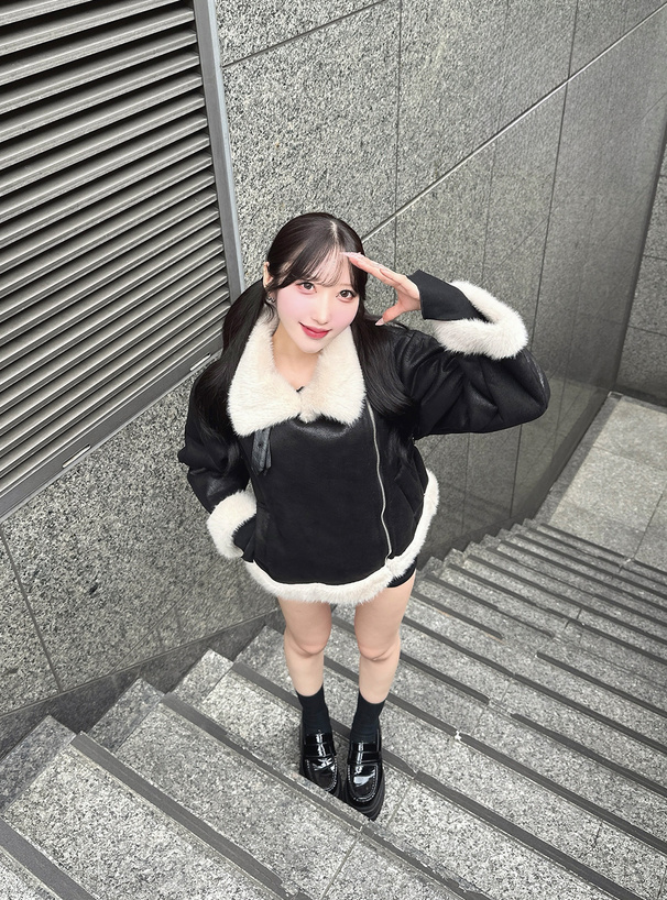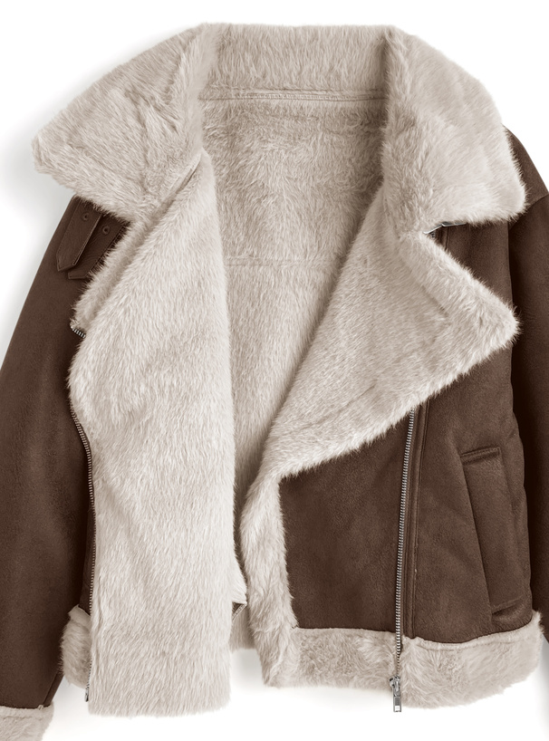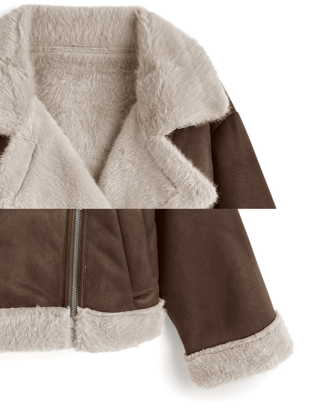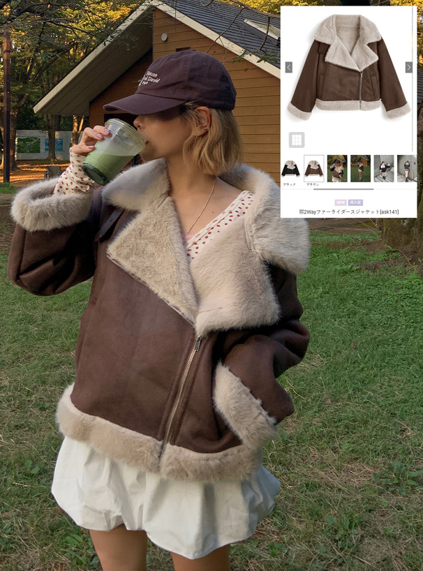 ふんわりとしたエコファー素材がアクセントになったジャケット。