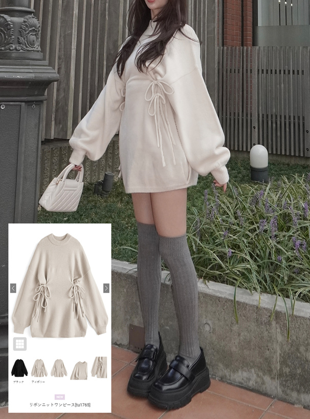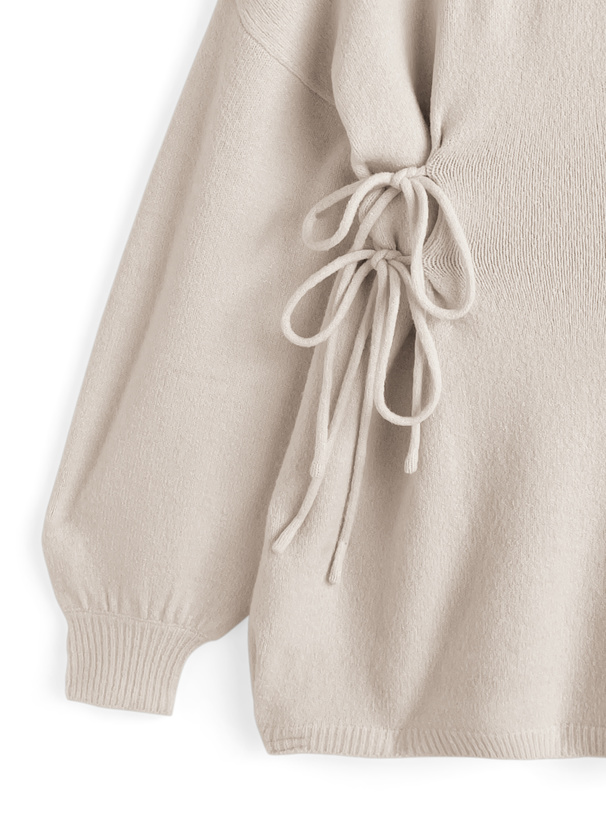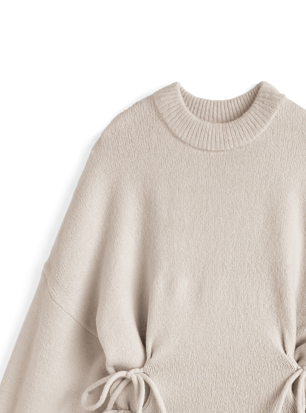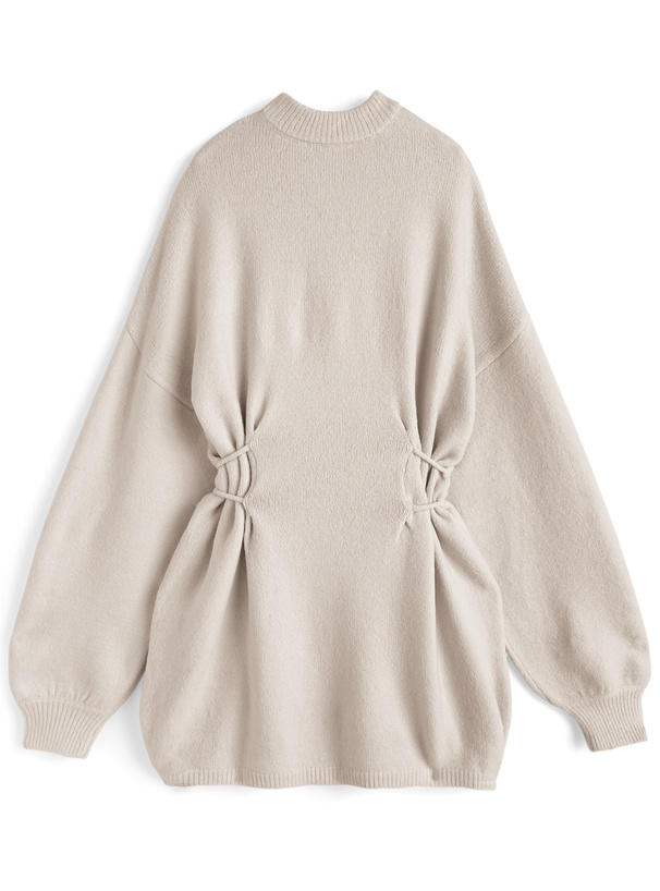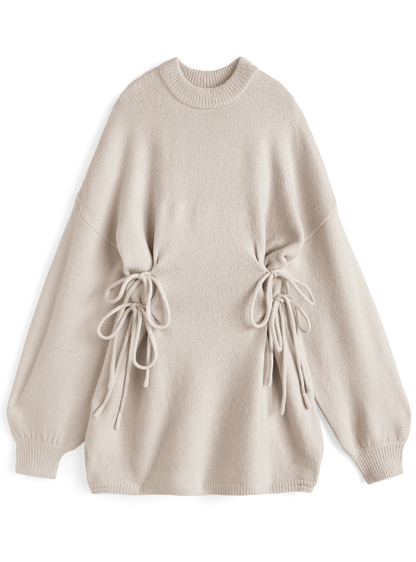 前後のウエスト部分にあしらったリボンディテールが、シルエットに立体感を生むポイント。