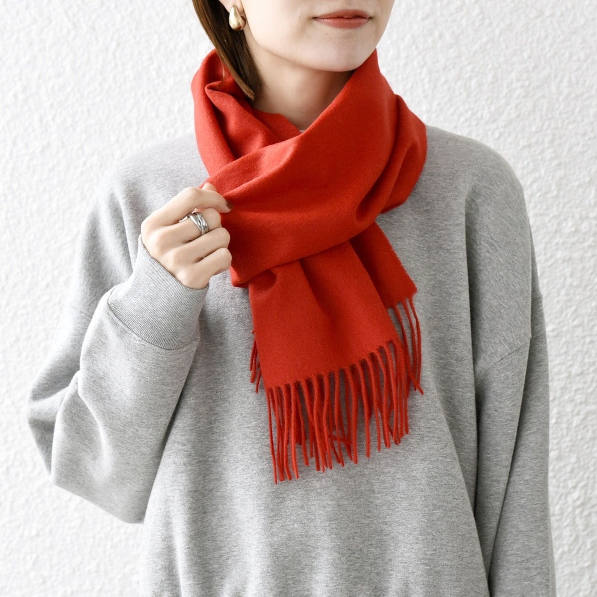 プレーンながらカシミヤの高級感漂うソリッドタイプのマフラーです。