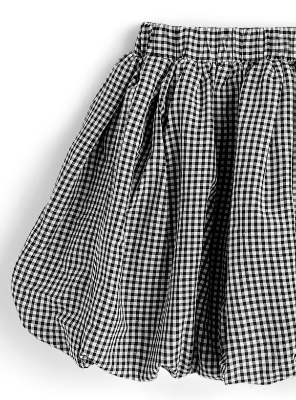 細かいギンガムチェック柄を使用した、ガーリーな雰囲気漂うミニスカート。