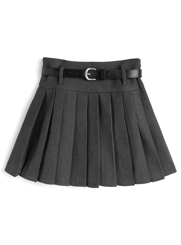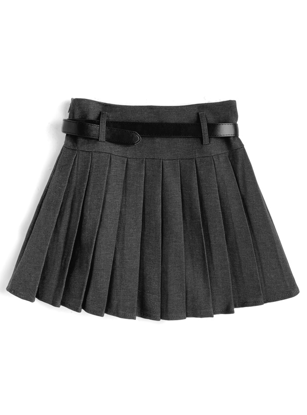 インパン裏地・ベルト付きプリーツミニスカート[at2627]