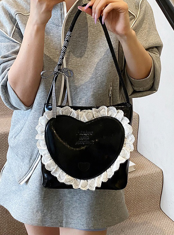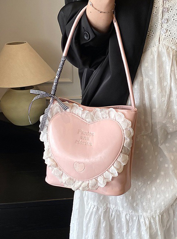 ラブリーなハートモチーフが視線を集めるショルダーバッグ。