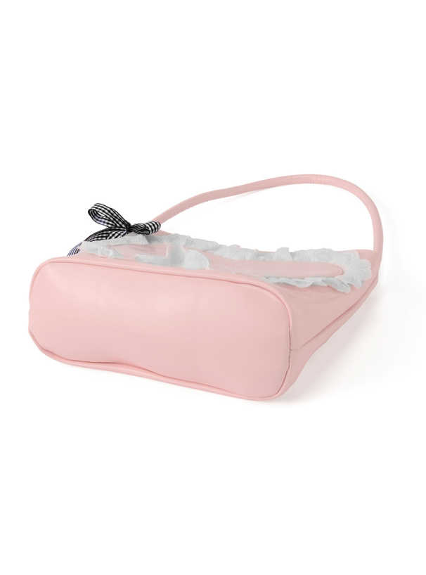 周りを縁取ったレースもハート柄のものを使用し、甘々に仕上げたアイテム。
