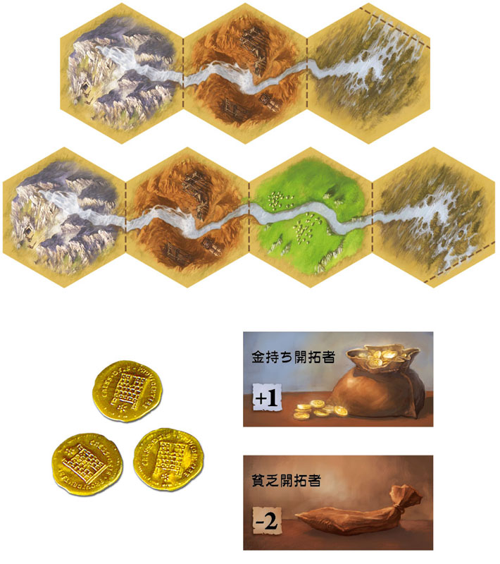 選択ルールは通常のゲームに変化を加えるもので、カタンを2人で遊ぶルールも含まれます。