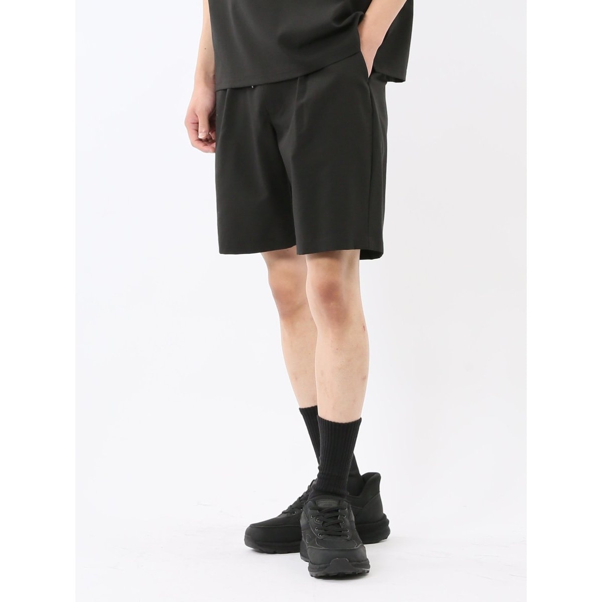 夏の終わりから暑さが残る秋まで楽しめる「circle motion air2」シリーズ。カジュアルセットアップにぴったりなイージーショートパンツです。ウエストはシャーリング仕様で着用ストレスを軽減。前ボタン、ファスナー有り、ドローコード付き、ベルト通し付き、前後ポケット付きです。