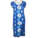 H■ハワイ製■ロイヤルクリエーション/ROYAL CREATIONS ハイビスカス柄 ムームー ワンピース【L】青/LADIES■9【中古】