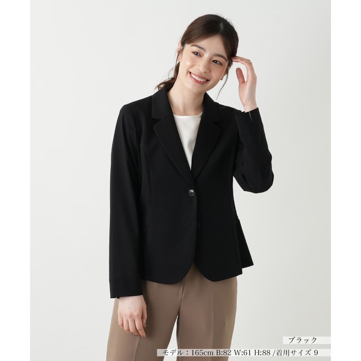 きちんと見えとカーディガンのような軽やかな着心地を両立した、シックな色合いのテーラードジャケット。伸縮性に優れた素材で動きやすく、ご自宅で洗えるイージーケアもポイント。高めのウエスト切替が腰の位置を高く見せ、スリット入りの袖口を折り返せば手元に抜け感をプラスできます。オフィスシーンやお出かけシーンにも活躍してくれます。