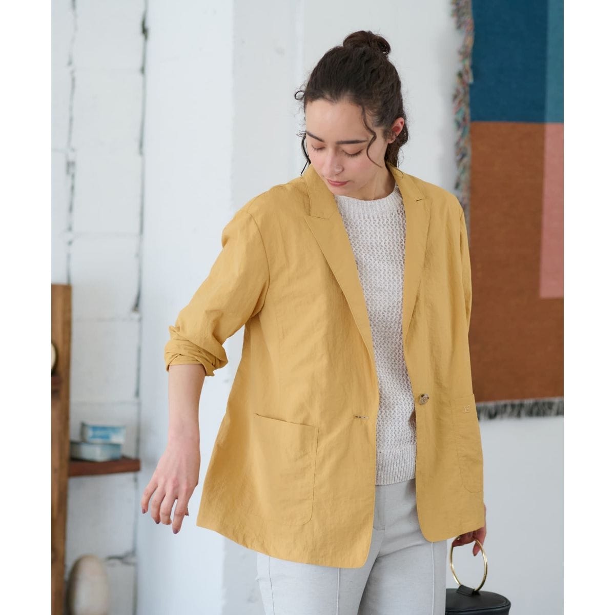 はっ水性を備えたマットな質感のナイロン素材を使用したライトジャケット。見た目のきちんと感と羽織ったときの軽さを両立した、今の気分にちょうどいい一着です。クラシカルなピークドラペルが顔まわりをシャープに引き締め、端正な佇まいを演出。表情のあるマーブルボタンをあしらい、左ポケットには小さくロゴ刺繍を施し、さりげない個性をプラスしました。きれいめスタイルにはもちろん、カジュアルなアイテムと合わせても大人のこなれ感を添えてくれます。