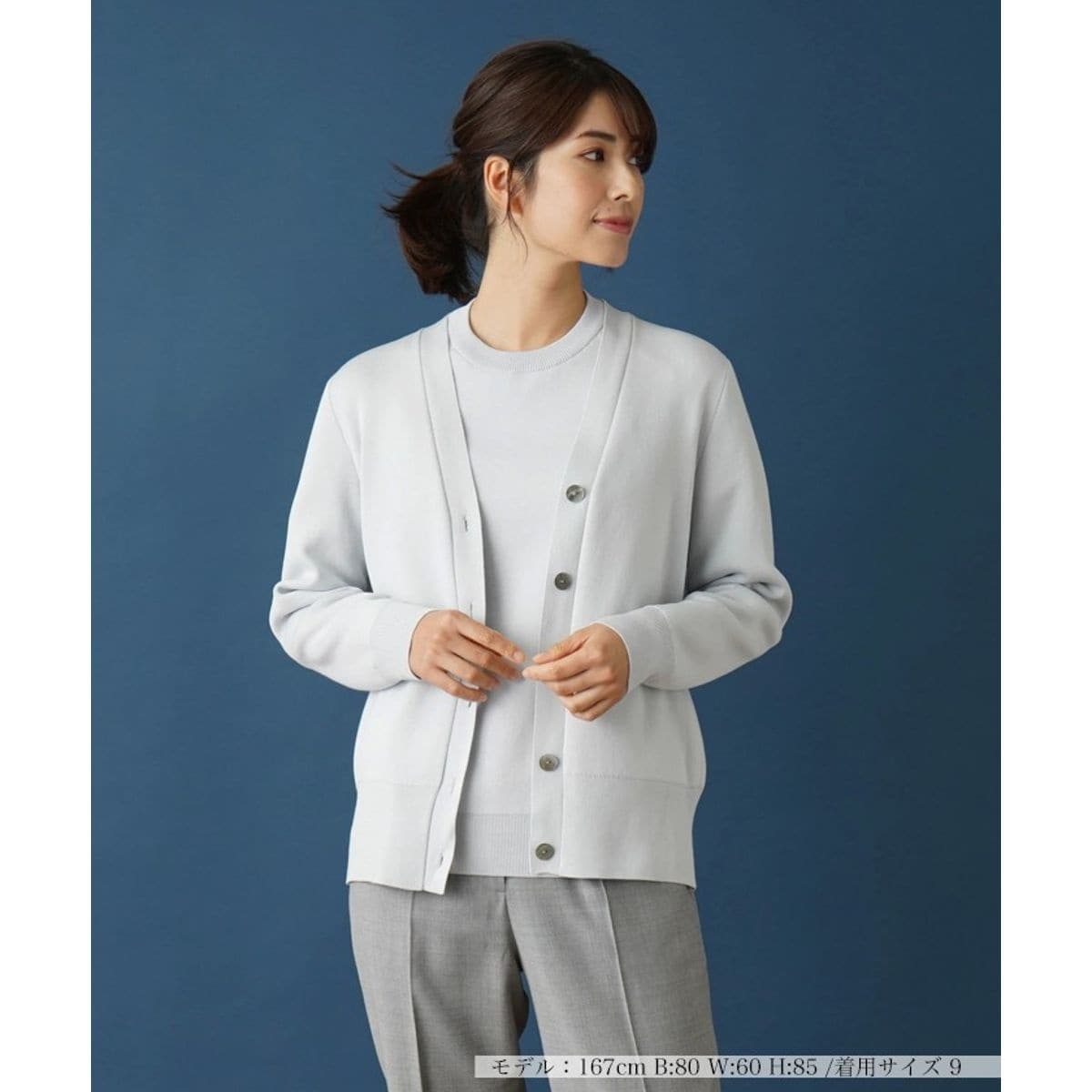 上質なコットンをハイゲージで丁寧に編み上げた、やや厚手ながらさらりとした風合いのニットカーディガン。すっきりとしたシャープなVネックが着こなしをスマートに演出。余計な装飾のないシンプルなデザインで、季節を問わず幅広いテイストのコーディネートにすっと溶け込んでくれる一枚です。フロントにはマーブルの貝調ボタンを採用し、さりげないアクセントを加えています。