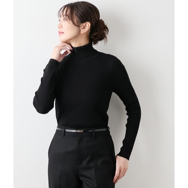 ベーシックなリブ編みのタートルネックプルオーバー。程よいフィット感で身体のラインをすっきり見せつつ、窮屈さを感じさせない快適な着心地です。シンプルだからこそ着回し力が高く、秋口や春先には1枚で、寒い季節にはインナーとして重宝する万能な一着です。
