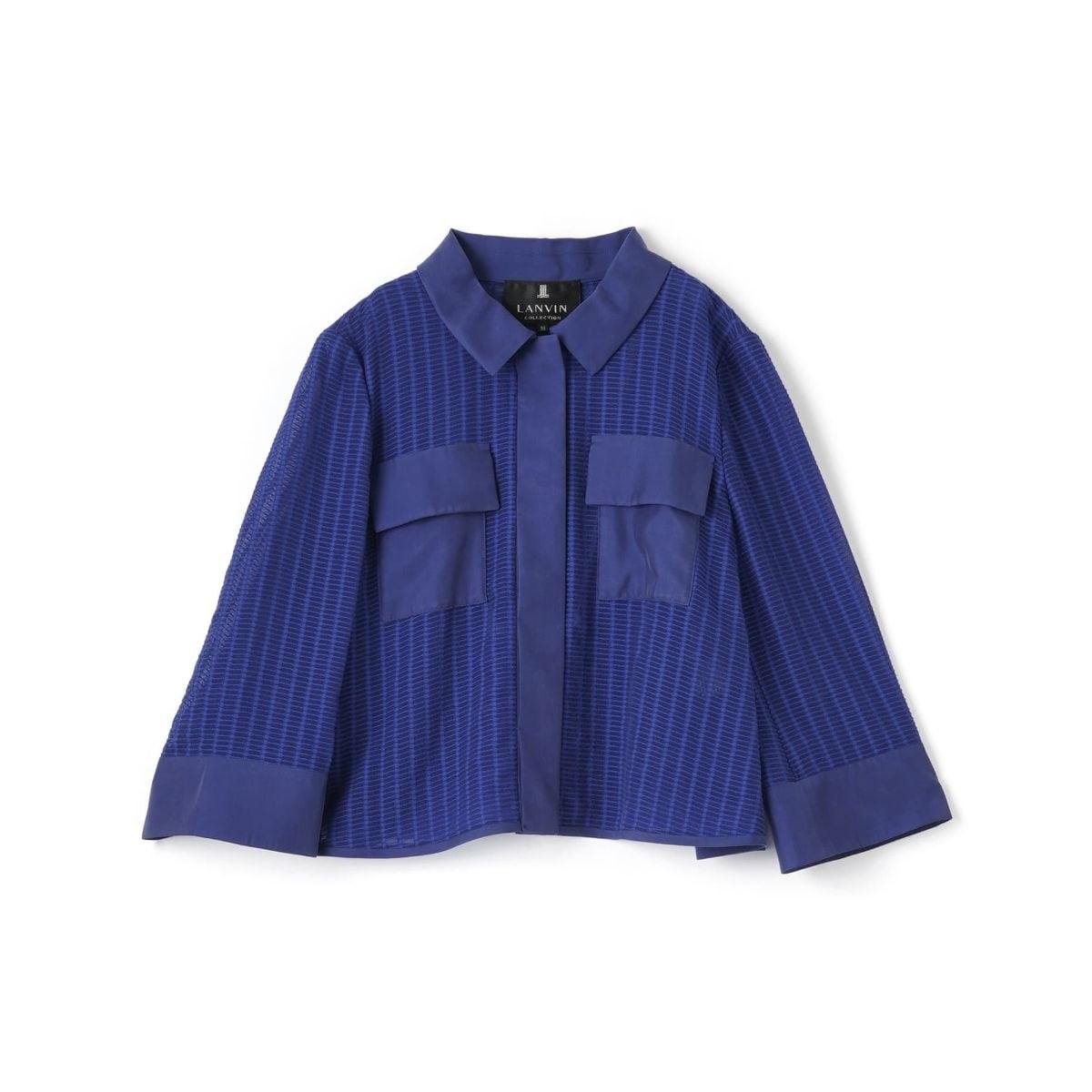 ユニークな編地が繊細な、ブラウスライクなジャケット。衿や袖、ポケットが艶感のある素材で仕立てられ、ワントーンでも様々な仕立てで楽しめる一枚です。ワンピースやハイウエストのボトムが相性抜群です。