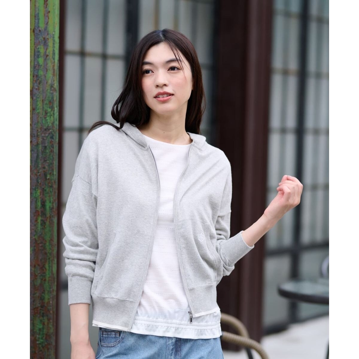 軽やかな着心地と程よいカジュアルさが魅力の、ジップアップニットパーカー。