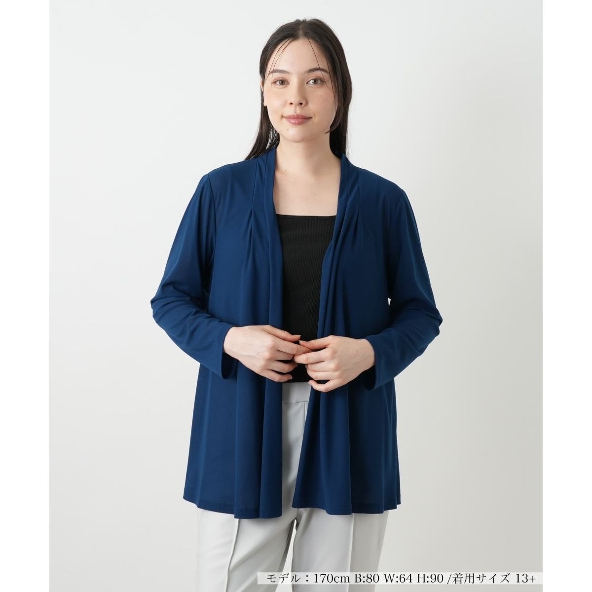 伸縮性に優れたパワーネット素材を使用した、動きやすいストレスフリーな着心地のカーディガン。フロントは着回しやすいシンプルなデザインながら、バックスタイルは軽やかなプリーツがふわりと揺れ、女性らしくエレガントな表情を演出。繊細な透け感がコーディネートに涼しげな抜け感をプラスし、インナーとのレイヤードもお楽しみいただけます。シンプルなTシャツやワンピースに重ねるだけで、ぐっとこなれたスタイルに格上げしてくれます。
