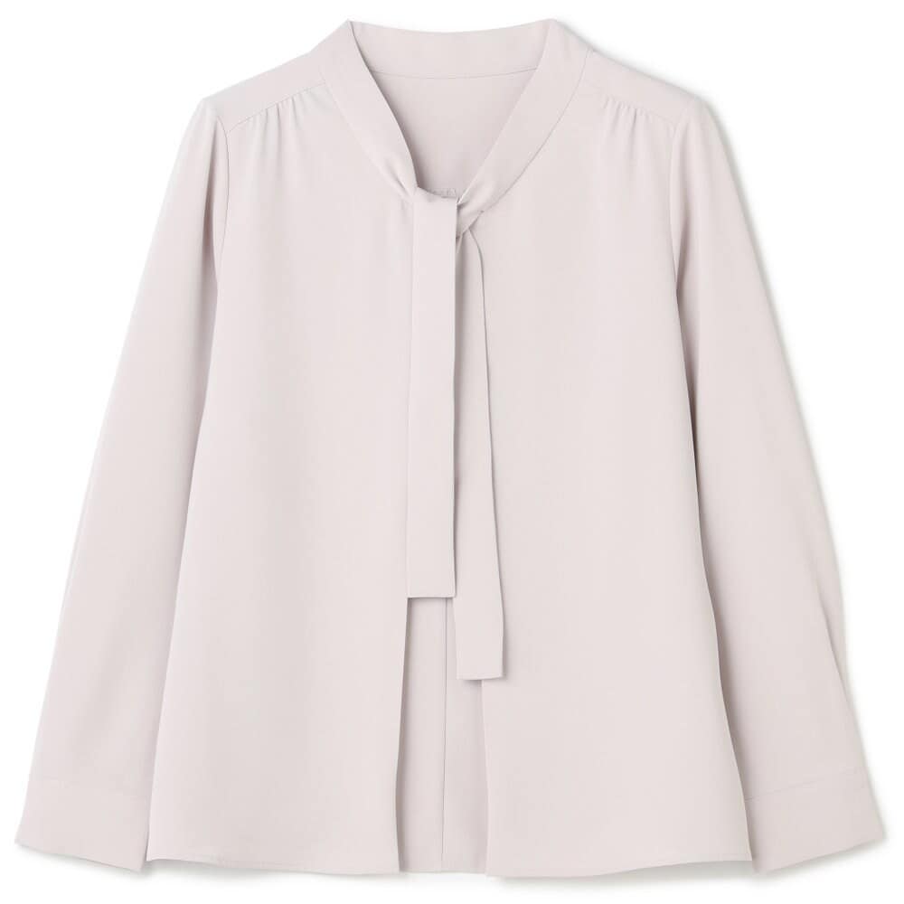【長袖】洗えるボウタイプルオーバー ブラウス ホワイト ストレッチ UV加工 静電気防止