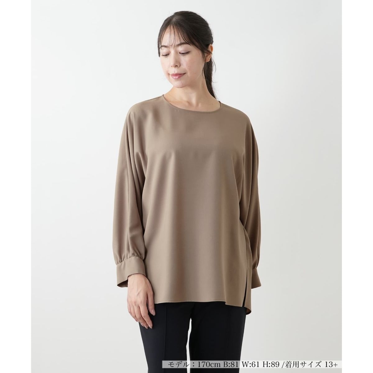 さらりとした着心地が魅力のブラウスです。ポリエステル100%の上質な素材感は、仕事着としても最適。ノーカラーデザインと、洗練されたシルエットが、上品な印象を与えます。