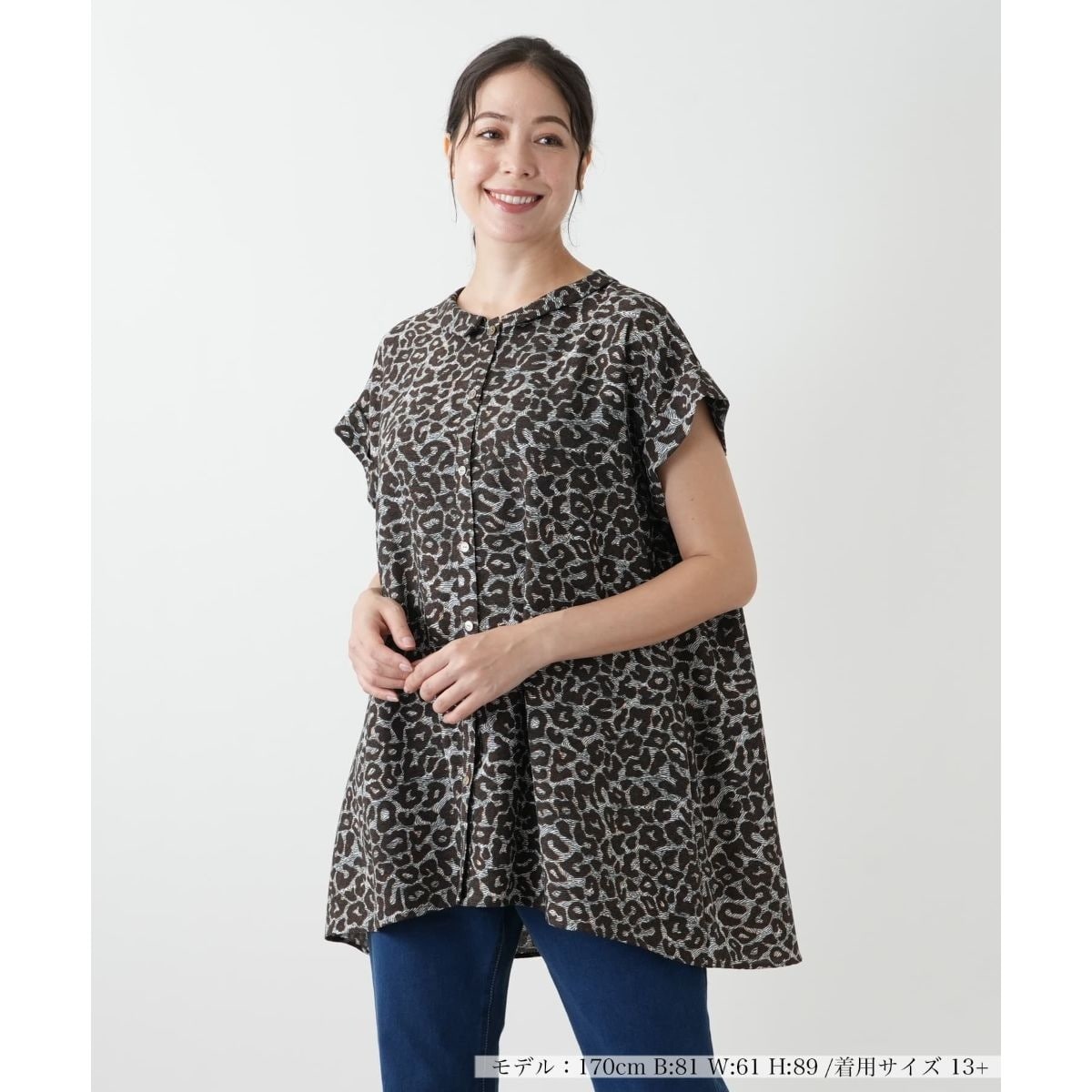 ゆったりと広がるAラインシルエットが魅力のレオパード柄ブラウス。落ち着いたカラーで、大人っぽく着こなせる配色に仕上げました。前開き仕様で、羽織りとしても着られる汎用性の高さがポイント。やや薄手の生地は軽やかで、動くたびに自然なドレープが生まれます。パンツと合わせてカジュアルに、スカートと合わせてフェミニンにもコーディネート可能。秋の着こなしにスパイスを添える一着です。