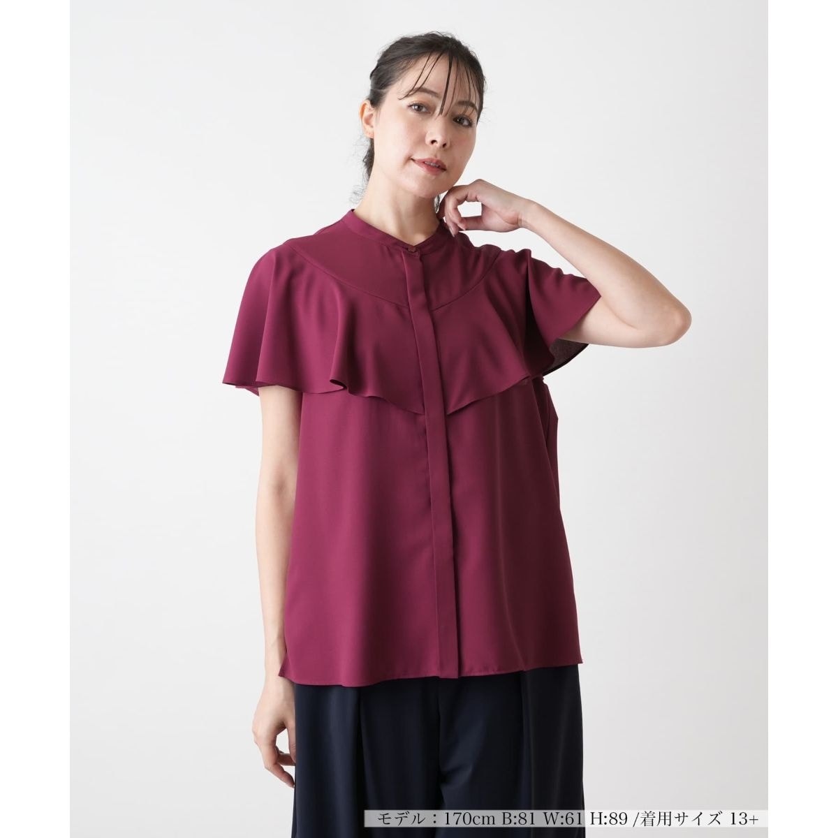 バンドカラーと比翼仕立てのすっきりとしたフロントに、ショルダーから袖へとつながるフレアな生地使いが、さりげなく華やぎを添えるブラウス。動くたびに揺れる柔らかなラインが絶妙なバランスで、オンにもオフにも着まわせる一枚に。無地ならではの上品な佇まいで、柄物ボトムともフレキシブルにコーディネートできます。きちんと感も、軽やかな生地感も、どちらも欲しい日にぴったりのアイテムです。