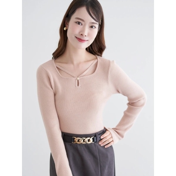 ・胸元のクロスリブデザインが立体感を生み、上品かつ華やかなアクセントに。