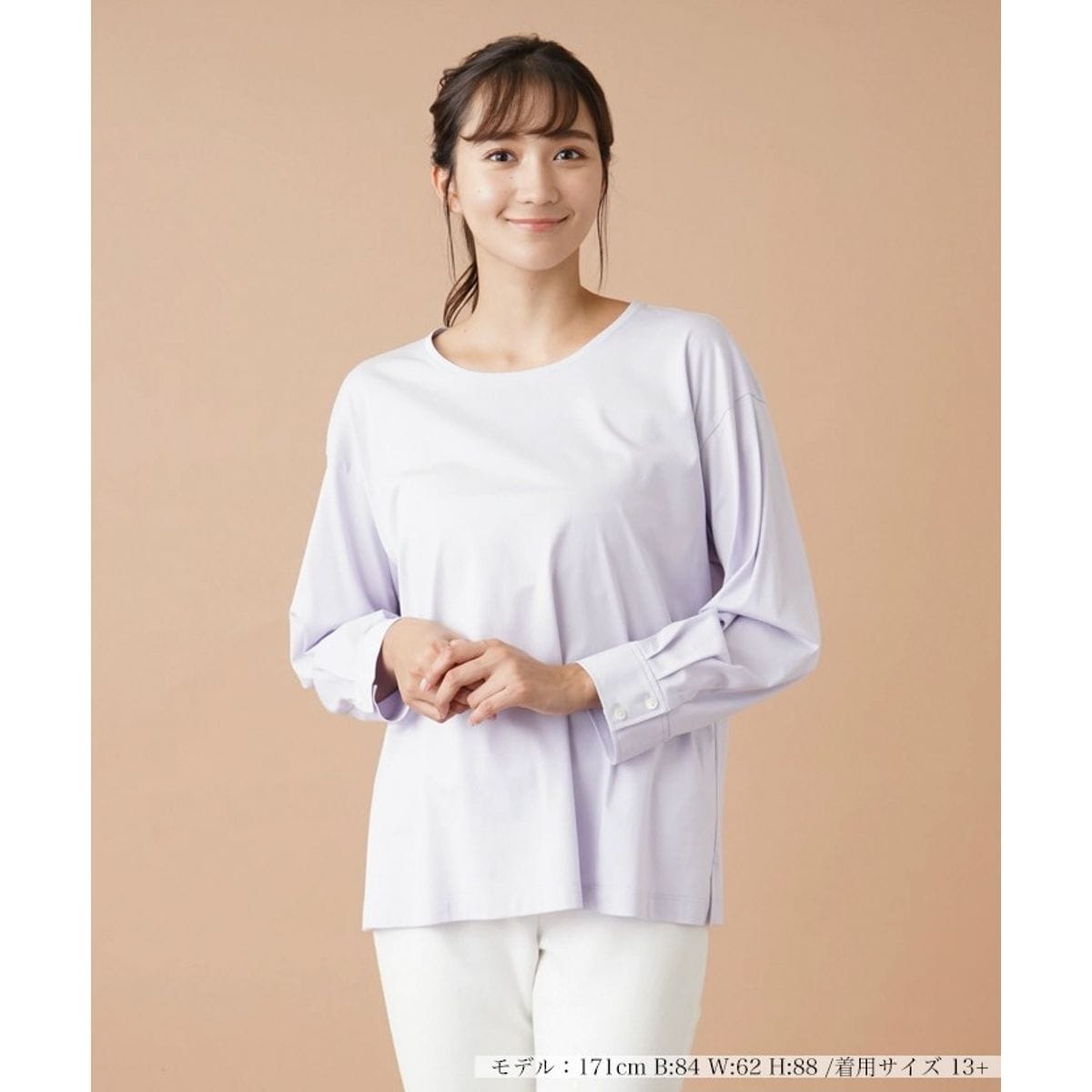 肌当たりのよいトリコットジャージー素材を使用したプルオーバー。ネックラインはゆったりめに開いており、絶妙な抜け感を作り出します。ドロップショルダーで落ち感をもたせ、肩肘張らないリラクシーな着心地を叶えました。シャツ袖風の袖口デザインがカジュアルになりすぎず、きれい見えする便利なアイテムです。袖口はボタンにより開閉が可能。パンツにもスカートにも合わせやすく、コーディネート力にも優れています。