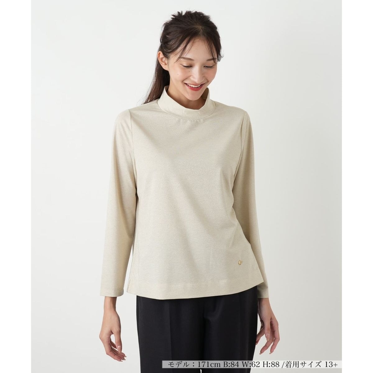柔らかな肌触りと快適な着心地が魅力の、ハイネックカットソー。ポリエステル、レーヨン、ポリウレタンをブレンドした素材は、しなやかで心地よい肌触りと、程よいストレッチ性を兼ね備えています。上品なハイネックは首元を優しく包み込み、肌寒い季節にぴったりです。ご自宅で手洗いできるウォッシャブル仕様で、日常のお手入れも簡単。一枚で着ても、インナーとしても上品に映える、大人の女性のための着回し力の高いアイテムです。秋のコーディネートに軽やかなアクセントを添える、心地よさとデザイン性を兼ね備えた一枚です。