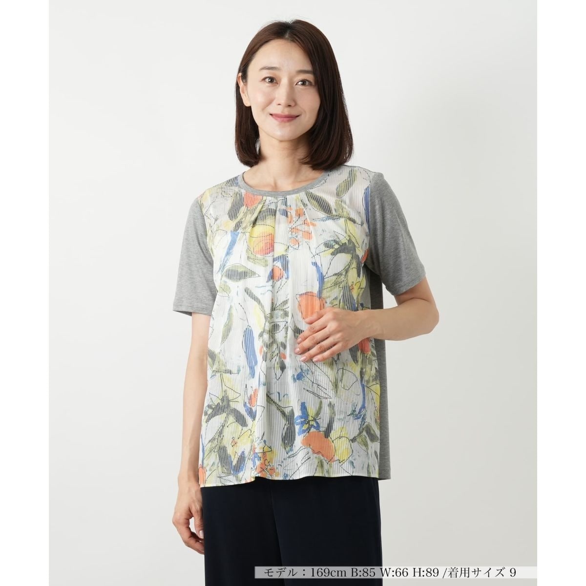 前身頃に染料インクジェットプリントが施された、まるでアート作品を纏うような華やかさを演出するカットソー。柄の部分はプリントの美しさをキープしつつ、後身頃とスリーブには伸縮性のある素材を採用することで、ストレスフリーな着心地を実現しています。薄手の生地感は軽やかで秋口にぴったり。オーソドックスなデニムやシンプルなワイドパンツ、フェミニンなスカートと合わせるだけで、ぐっと洗練された大人のカジュアルスタイルが完成します。