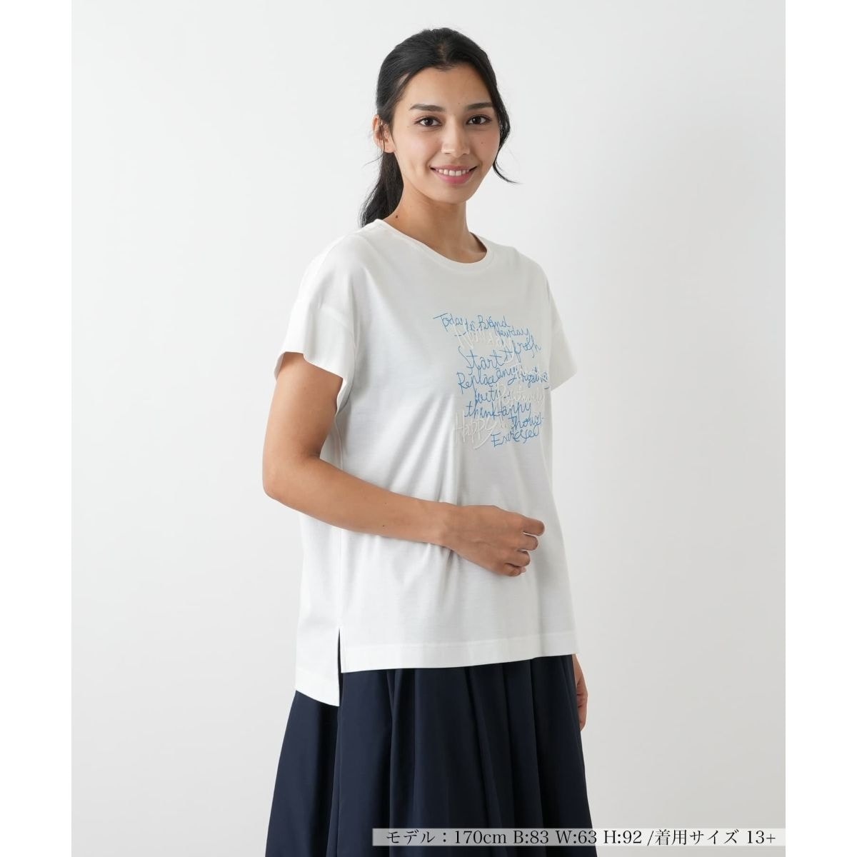 ソフトで肌触り心地よいスーピマコットン100%のTシャツ。ドロップショルダーでややゆったりとしたシルエットが、リラックス感のある着心地を提供します。前身頃にはロゴプリント、立体感のあるロゴ刺繍、そしてパールが施され、細部にまでこだわりを感じる一枚。ウォッシャブルでお手入れも簡単です。
