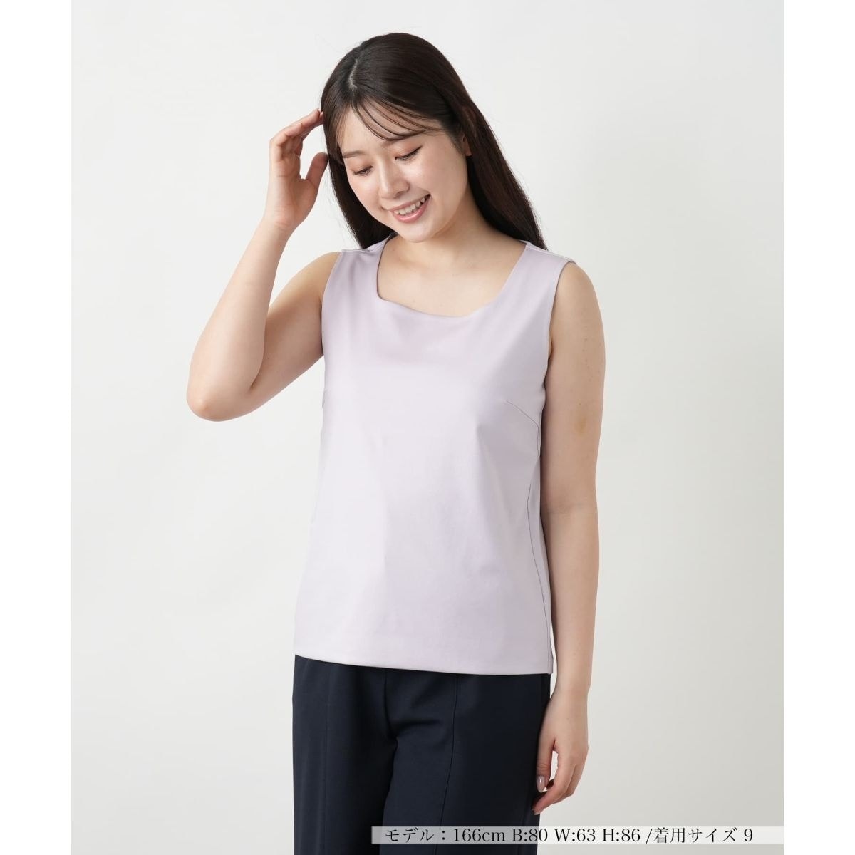 滑らかな肌触りのコットン生地を使用したタンクトップ。すっきりとしたシルエットながら、体に張りつきすぎない絶妙なフィット感で、美しいラインを自然に引き立てます。ネックラインは首元をすっきりと見せるスクエアカット。デコルテを程よくのぞかせることで、女性らしくもヘルシーな印象に仕上がります。前身頃の裾は折り返して二重に仕立てることで安心感のあるつくりに。一枚でさらりと着こなすのはもちろん、シャツやジャケットのインナーとしても頼れる存在です。