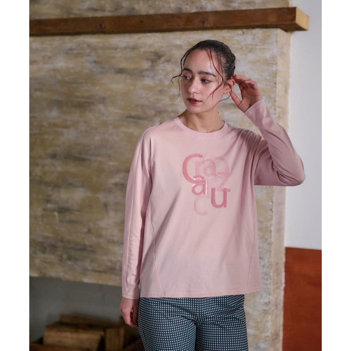 スパンコールの煌めくロゴ刺繍がポップに散りばめられた、着るだけで気分が盛り上がりそうなロングスリーブカットソー。遊び心のあるデザインながら、シンプルなシルエットで着た際のバランスがよく、多彩なコーディネートに自然と溶け込みます。暖かな素材感のアイテムが増えるこれからの季節、一枚でさらっと着こなせるトップスは何枚あっても重宝する使い勝手のよさが魅力です。すっきりとした印象を与えるクルーネックは、ネックレスやアクセサリーとの相性も抜群。