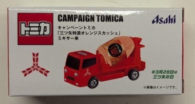 トミー/アサヒ飲料 キャンペーントミカ ミキサー車「三ツ矢特濃オレンジスカッシュ」 非売品