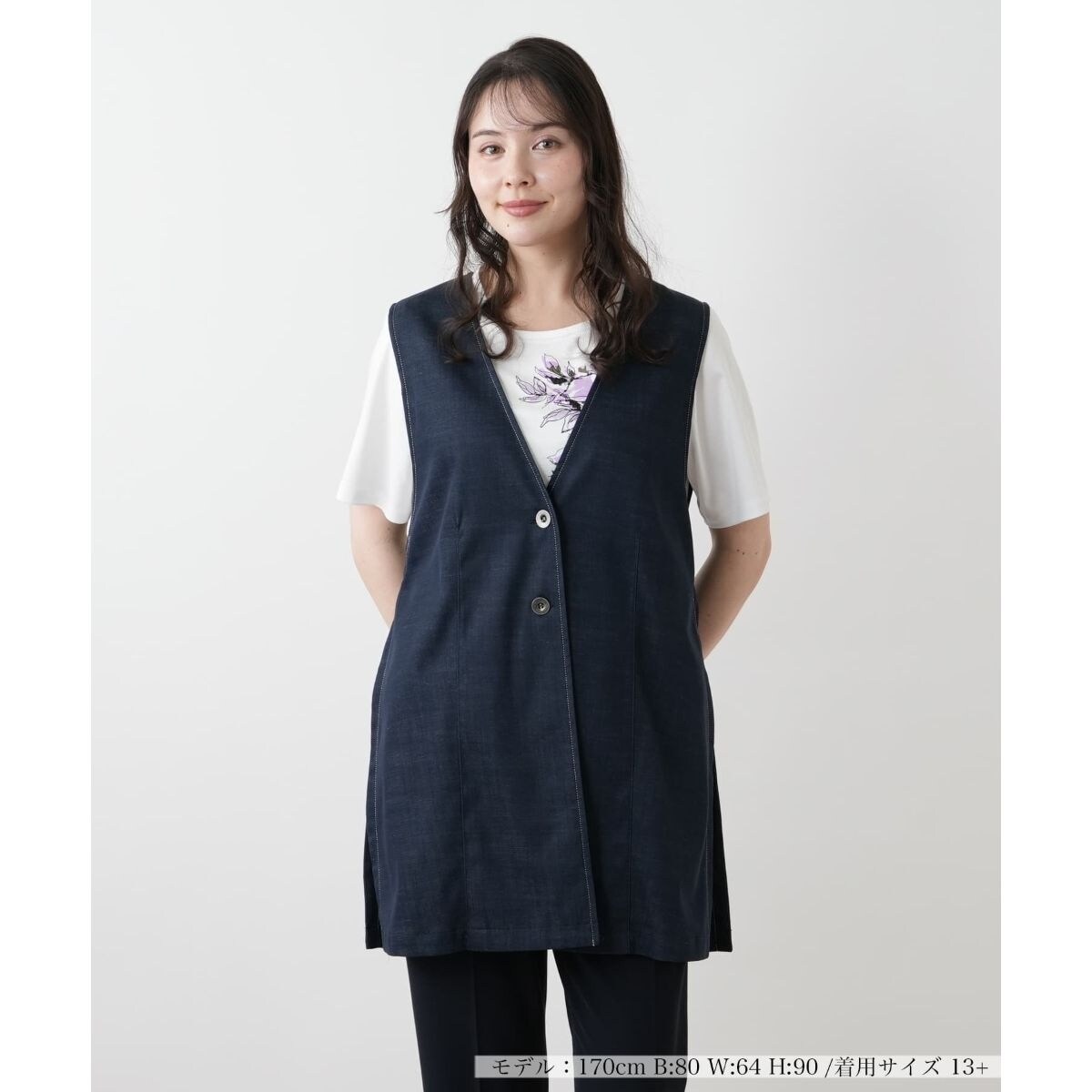 ステッチのアクセントがさりげなく効いた、洗練された印象のVネックベスト。深めのサイドスリットが軽やかな抜け感を生み出し、レイヤードスタイルにも馴染みやすくなっています。バックは高め位置に共布ベルトを配しており、スタイルアップ効果も期待できます。さらにベルトはアジャスターで調整可能なのでシルエットのアレンジも自在に。シンプルながらも細部にこだわったアイテムで、これからの季節の幅広いコーディネートに対応しそうです。