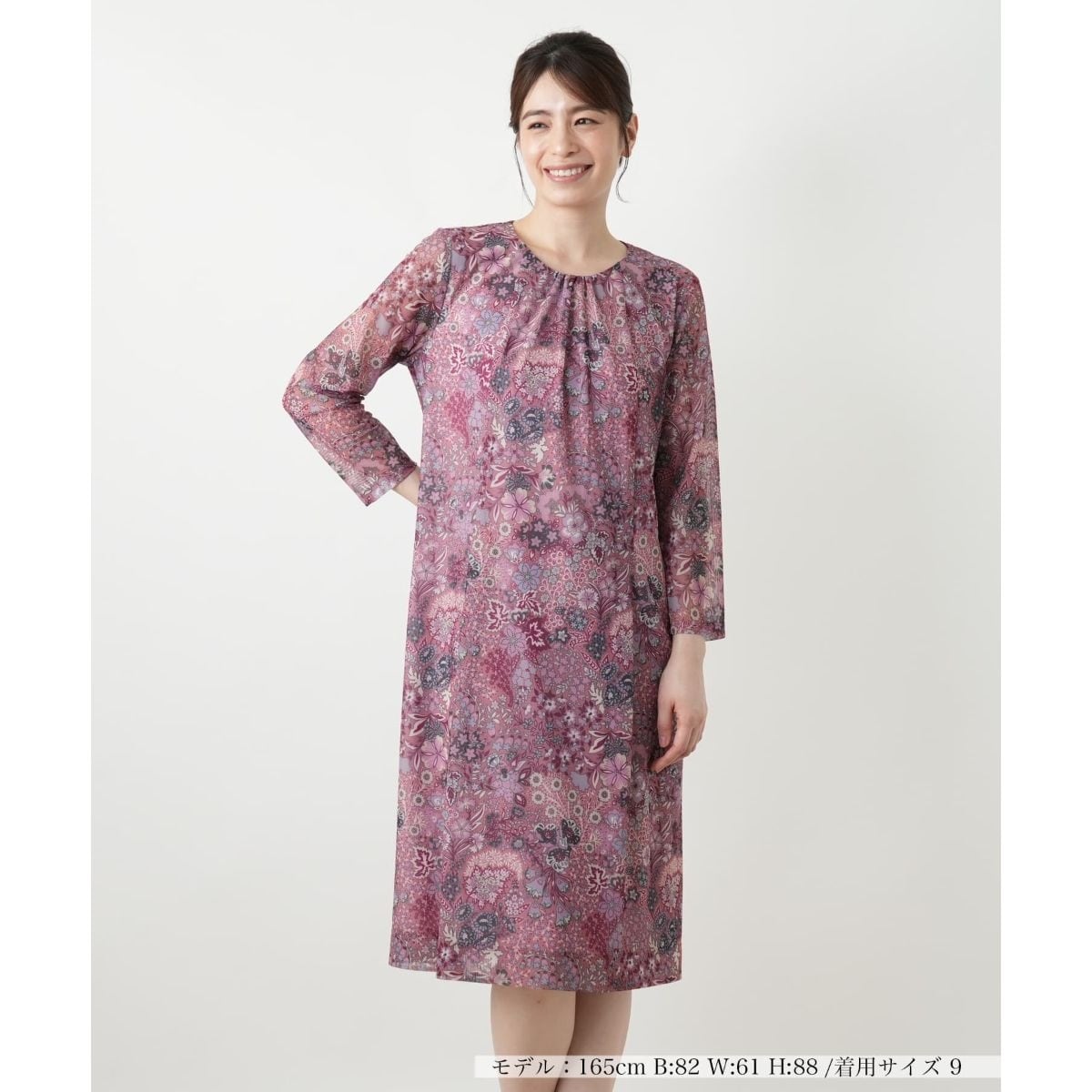繊細なボタニカル柄をプリントしたフレアワンピース。ノスタルジックでアーティスティックな柄が、一枚で着こなしをドラマティックに彩ります。ふわりと揺れるフレアシルエットは、女性らしい優雅さを演出。気になるボディラインを優しくカバーしつつ上品な印象を保ちます。ネック周りにはギャザーがあしらわれ、柔らかなニュアンスに。デイリーユースから、ちょっとしたお食事会、パーティーシーンまで、幅広いシーンで活躍する一枚です。