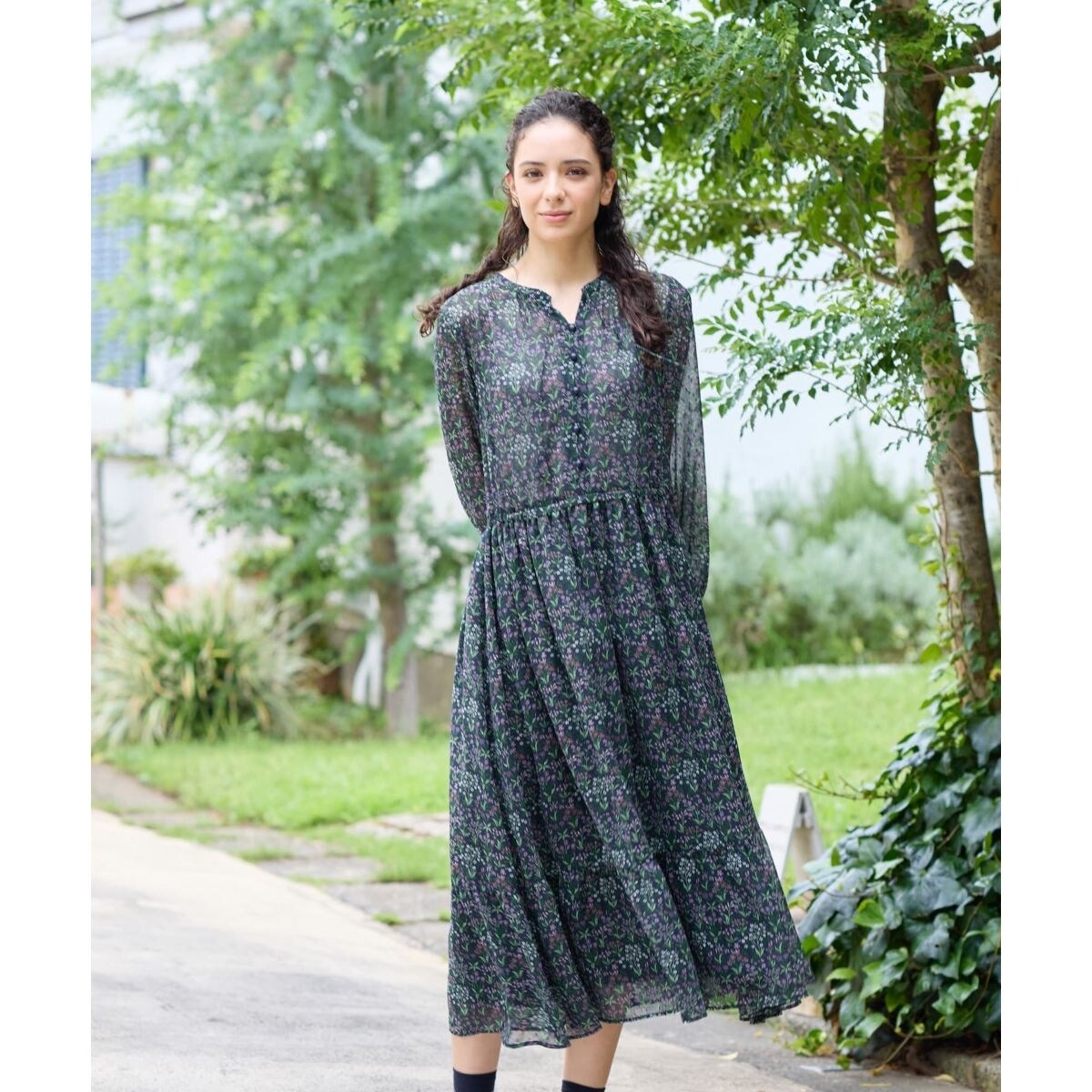 【ウィリアム・モリス×キャラ・オ・クルス】のコラボ企画である可憐な小花柄がちりばめられたVネックワンピース。
