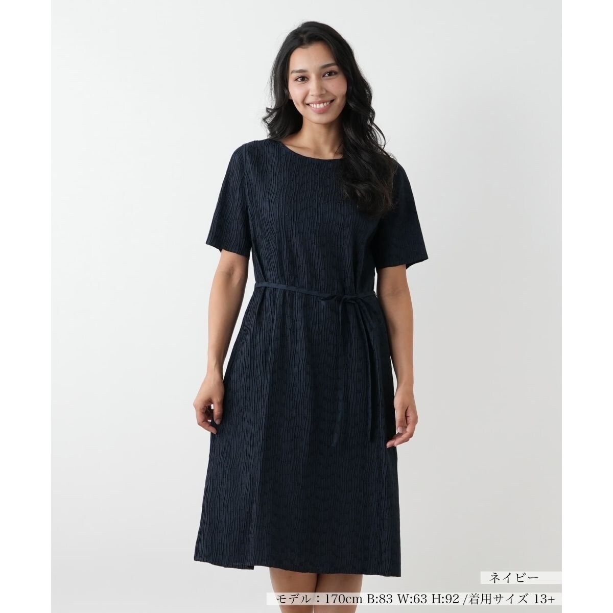全体に施されたアイレット加工とナチュラルなシワ感が、軽やかでエアリーな印象を与えるフレアワンピース。伸縮性のある素材で、動きやすく快適な着心地が感じられる一枚。付属のリボンベルトでウエストマークすれば、シルエットにメリハリが生まれ、より上品な着こなしに。アンダードレス付きなので、透け感を気にせず安心して着用いただけます。一枚ではもちろん、ジャケットやカーディガンを羽織れば、秋の様々なシーンで活躍するアイテムです。