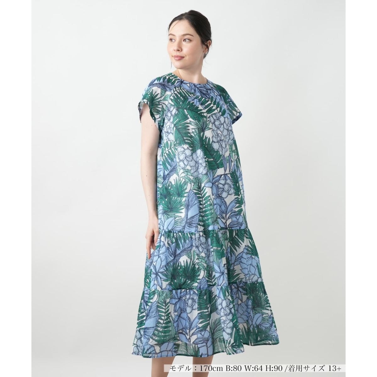 南国の空気を感じさせるようなボタニカル柄をプリントしたフレアワンピース。ふんわりとしたフレアシルエットが、歩くたびに優雅な表情を描きます。袖は肩を包むようなフレンチスリーブで、女性らしい涼やかなニュアンスに。さらりとした風合いのコットン生地を使い、快適な着心地を実現しました。一枚で着映えし、軽やかな着心地とともに気分も華やぐ主役級のアイテムです。バックファスナーにより開閉が可能。