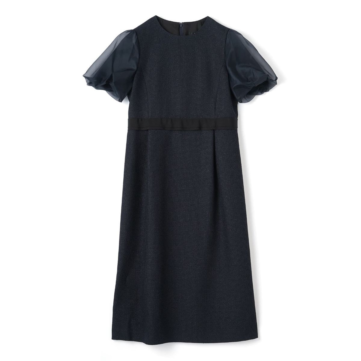ウエスト部分にあしらわれた太巾のグログランテープは、さりげないアクセントとなりながら、視覚的にウエストラインを細く見せるスタイルアップ効果も発揮します。