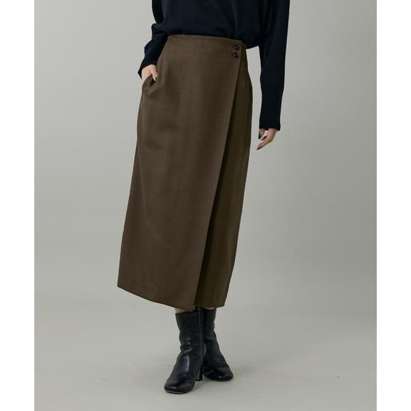 ■デザインエレガントなロング丈のラップスカート。ウエストから緩やかに広がるラインが、大人の女性らしい上品な佇まいを演出。フロントには深めのスリットを施し、抜け感と軽やかさをプラス。シンプルながらも洗練されたデザインで、オンオフ問わず多彩なスタイリングにフィットする一枚です。■素材ウールとポリエステルの混紡糸を使用したライトカルゼシリーズ。特殊なポリエステルを使用することで柔らかな風合いと美しい発色に仕上がっています。・裏地あり・ポケットあり ・ウエストボタン仕様・水洗い可■サンプル撮影商品画像の商品はサンプルです。実際の商品とはサイズや色味、素材、デザイン等の仕様が若干変更になる場合がございます。■カラーについては、可能な限り実際の商品に近いカラーで撮影をおこなっておりますが、照明の関係により実際の製品とは色味が違って見える場合があります。またパソコン・スマートフォンなどの環境により、若干製品と画像のカラーが異なる場合もございます。現物と画像のカラー差異については返品理由となりませんので、予めご了承ください。■サイズ表記はあくまで目安となります。