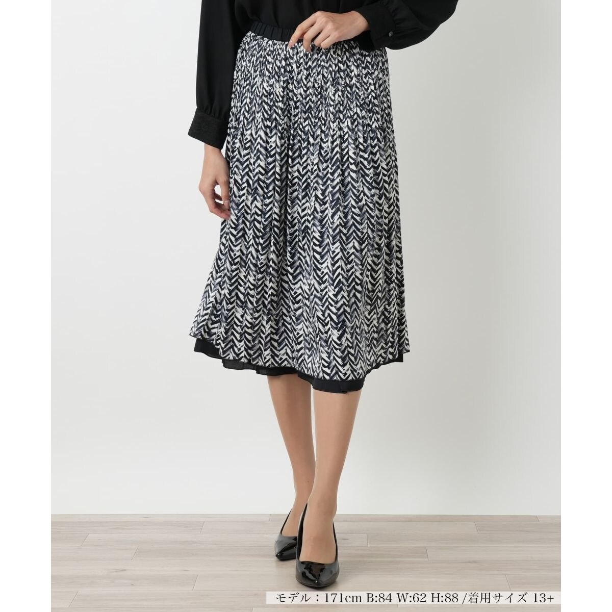 表情豊かな柄が魅力のリバーシブルプリーツスカート。ポリエステル素材は、しわになりにくく、しなやかな肌触りが特徴です。片面は柄、もう片面は無地で、一枚で異なる表情を楽しめます。優雅に広がるプリーツシルエットが、女性らしいエレガンスを演出。ウエストはゴム入りで、快適な穿き心地ながらも、見た目の美しさを損ないません。ご自宅で手洗いできるウォッシャブル仕様で、日常のお手入れも簡単。同シリーズのスカートとセットアップとしてもお召しいただけ、オフィスシーンはもちろん、普段使いにもふさわしい、着回し力の高い一枚です。