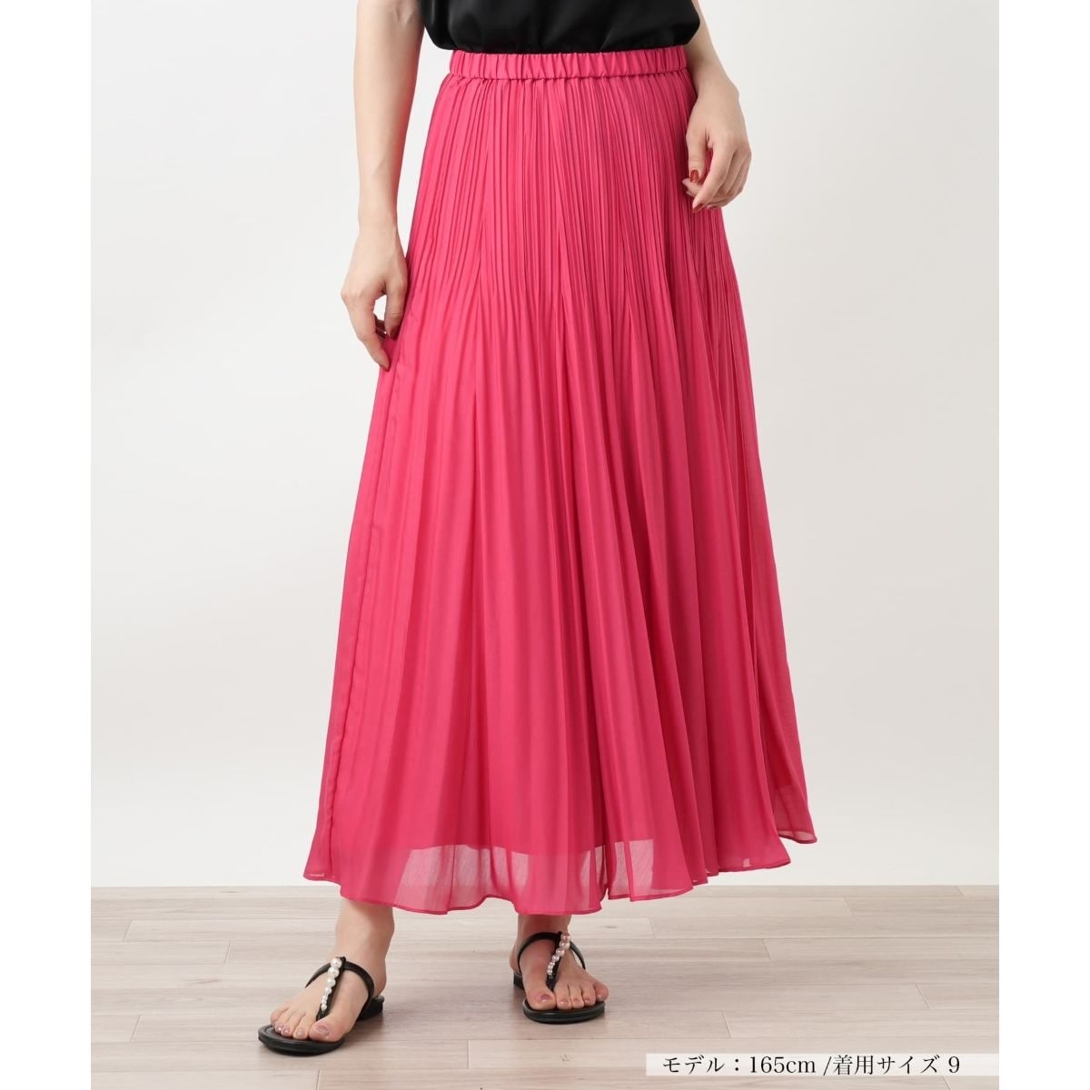 繊細なプリーツが生み出す、美しい陰影と豊かな表情が魅力のロングプリーツスカート。歩くたびに空気をはらんで優雅に揺れ、何気ない所作まで女性らしく演出します。ウエストは締め付け感のない総ゴム仕様で、見た目のエレガントさとは裏腹に、一日中ストレスフリーな穿き心地を実感できます。気になるヒップや脚のラインを拾わず、すっきりと見せてくれるのも嬉しいポイントです。やや薄手の軽やかな生地ながらしっかりとした裏地付きで透けの心配もなく、ご自宅で手洗いできるのでお手入れも簡単です。