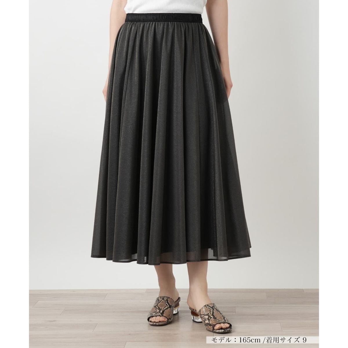 軽やかな揺れ感とさりげなく煌めくラメ感が魅力のフレアロングスカート。分量感のあるシルエットが、歩くたびにふわりと広がり、女性らしいやわらかさを演出します。ウエストは総ゴム仕様で、ストレスフリーな穿き心地を実現。裏地付きで透け感を気にせず着用でき、夏場も快適な薄手素材が涼やかさをキープします。きちんと感のあるブラウス合わせはもちろん、カットソーやニットとも相性が良く、デイリーからお出かけまで幅広いシーンで活躍してくれます。