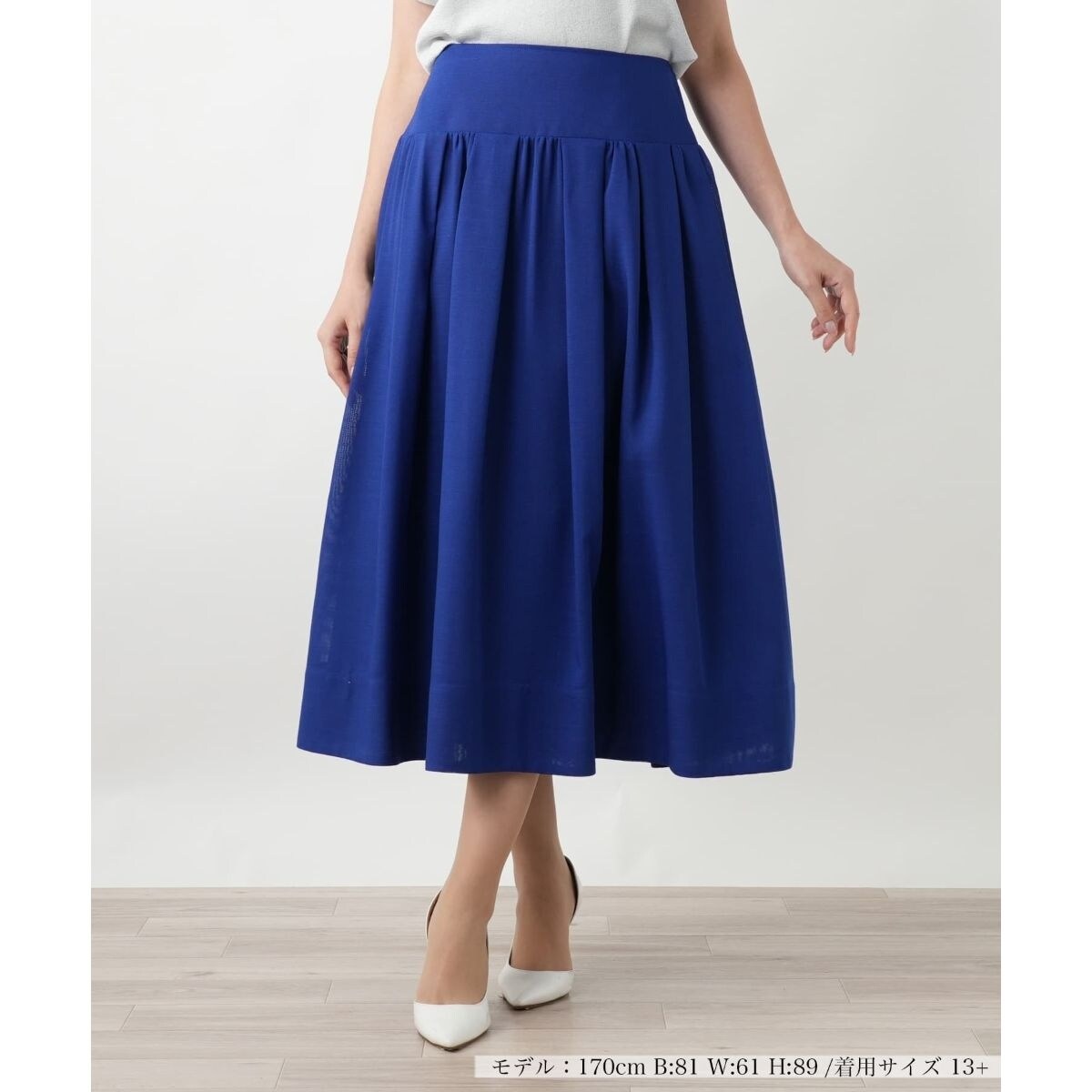 ギャザーを施してたっぷりと生地を使ったフレアスカート。高めに設定されたウエストラインは、ウエストまわりをすっきりと見せながら脚長見せ効果も抜群。ミニマルなデザインだからこそ、合わせるトップスを選ばず、オンにもオフにも活躍します。美しいシルエットと快適な着心地を両立した、大人の女性にふさわしい一枚です。サイドホック&ファスナーにより開閉が可能。同素材のトップスと合わせてセットアップで着こなすのもおすすめです。
