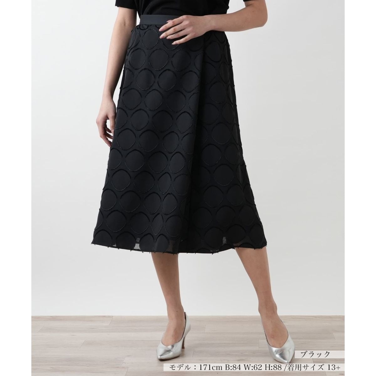起感のある大ぶりのサークル柄が印象的なミディアム丈のフレアスカート。ウエストは程よくシェイプし、裾に向かって大胆に広がるシルエットが存在感のある華やかなスタイルを演出。動くたびにふんわりと揺れ、女性らしさを引き立てる一枚。落ち着いたシックな色合いでまとめているため、柄が主張しすぎず、さまざまなトップスと好相性。同柄のジャケットを合わせたセットアップコーディネートも対応可能です。