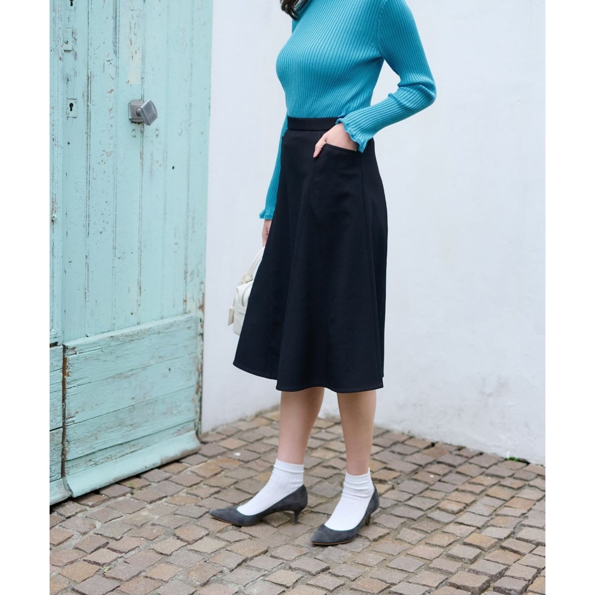膝丈程度の上品なAラインシルエットでデザインした、クラシカルモダンなフレアスカート。しっかりとした質感の生地には伸縮性があり、肌当たりもよくこれからの季節にぴったり。バックウエストはゴム仕様で心地よくフィットします。両サイドには実用的なポケットをレイアウト。デイリーからオフィス、お呼ばれまで多彩なシーンで活躍してくれそうなアイテムです。バックのホック&ファスナーによりスムーズに着脱が可能。セットアップ対応。