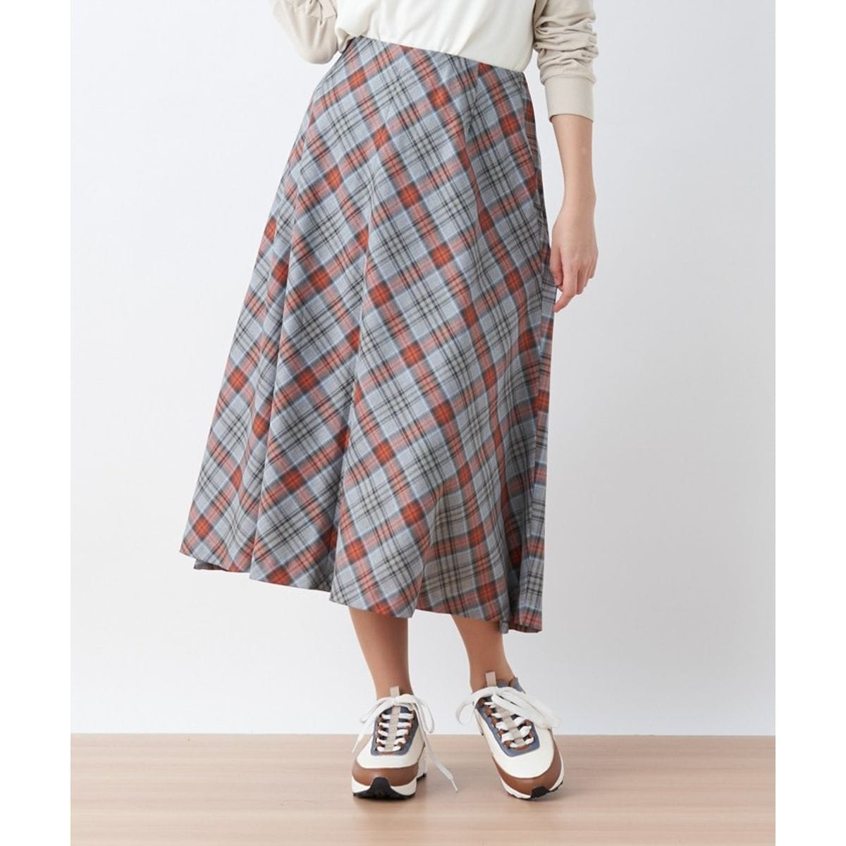 大人っぽい落ち着きをキープしつつ程よいインパクトも持ち合わせた、チェック柄のロングスカート。ふわっと広がるフレアシルエットで、レディな気分も高まりそう。ウエスト周りはすっきりと仕上げているから、タックインもサマになります。