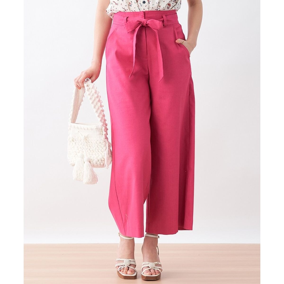 共布ベルトでリボンがフェミニンなワイドクロップドパンツ。
