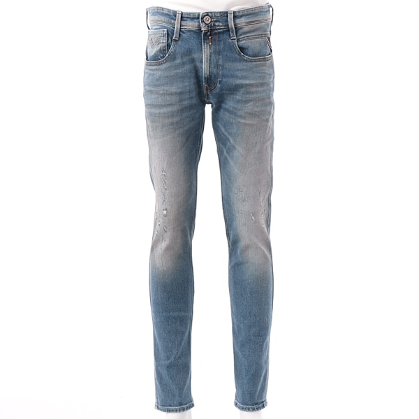 【ANBASS/アンバス】レギュラーウエスト、テーパードシルエットながらも、腰やもも周りにややゆとりを持たせた、きれいめなシルエット、ジップフライ。<br>リプレイの最高級ライン。「マエストロ(イタリア語で"巨匠"の意)」と呼ばれていた創業者へのオマージュ的ライン。
