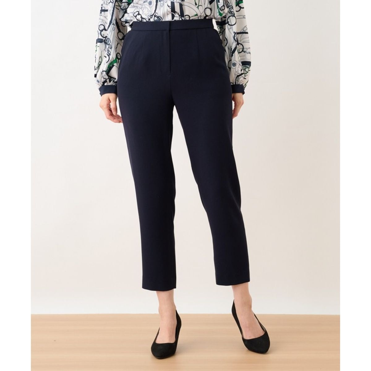 アセテート混のバックサテン素材を使用したテーパードパンツ。きれいめな表面感とストレッチ性が特長の素材です。裾に向かって細くなるテーパードシルエットのデザイン。ウエストはカーブゴム仕様で、すっきりと程よいフィット感です。