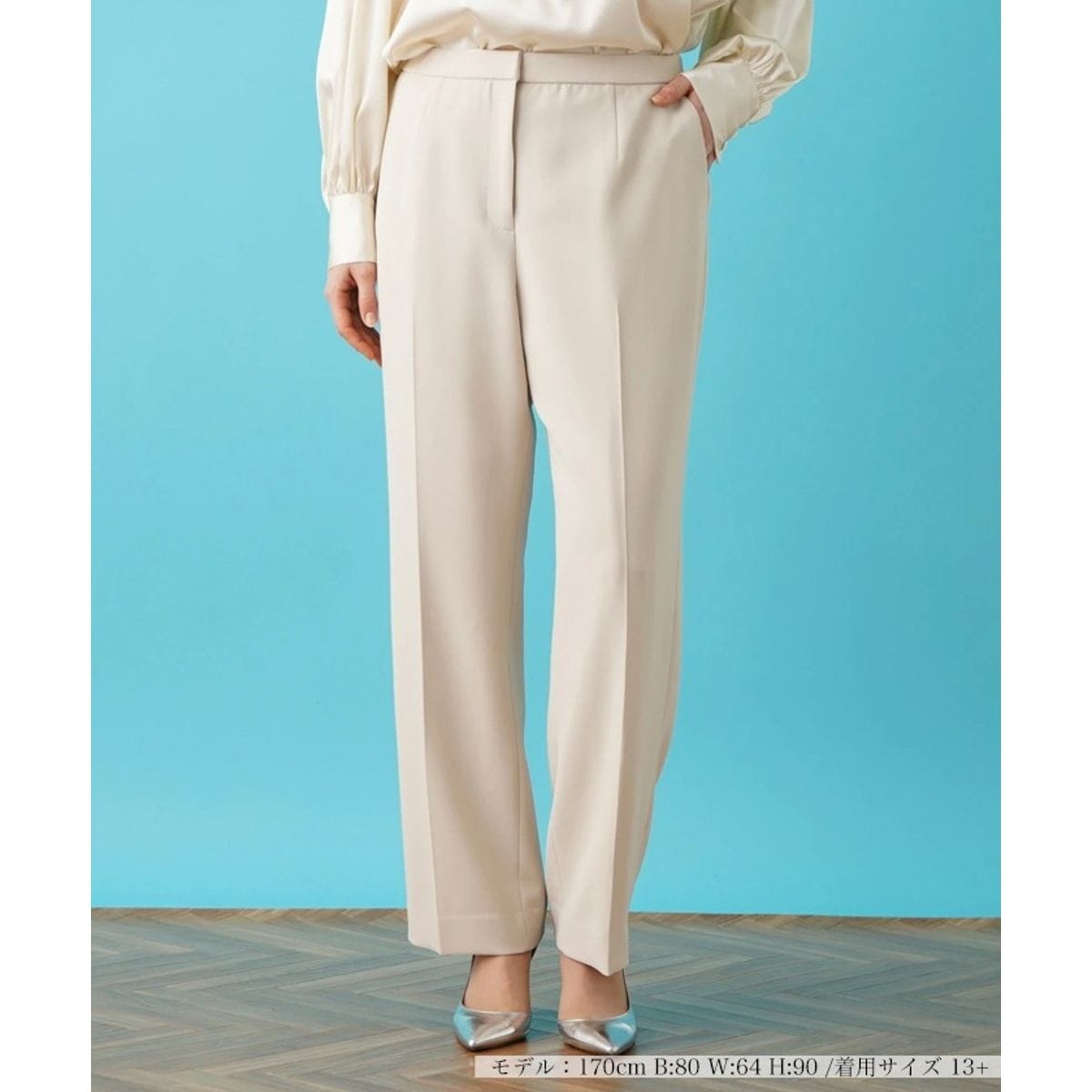 通勤はもちろん、セレモニーなどのオフィシャルな場面でのスタイリングにも活躍する、フルレングスのセンタープレスパンツ。すっきりとした無駄のないシルエットが、美脚見せを叶えてくれそう。ウエストには伸縮性があり、穿き心地も◎。