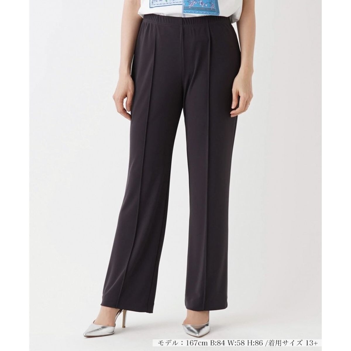 カットソーやブラウスなど様々なトップスとコーディネートしやすい、ベーシックな無地のストレートパンツ。股上をやや深めに設定し、程よいリラックス感を生み出しています。センターシームにゆったりめのシルエットがレッグラインに上品さを与え、落ち着いた佇まいを演出。生地にはストレッチ性をもたせているので足捌きも良好です。ウエストは総ゴム仕様とし、心地よいフィット感をもたせています。