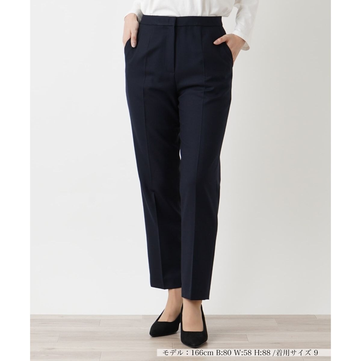 汎用性に優れた、オーソドックスな無地のセンタープレスパンツ。すっきりとしたシルエットが美しいラインを描きながらも、股上を深めに設定することで、洗練されたデザイン性とリラックス感を両立。生地にはストレッチ性があり、ウエスト周りには程よい伸縮性を持たせているため動きやすく、長時間着用しても快適なはき心地をキープします。シンプルなデザインは、オフィスシーンではもちろん、週末のお出かけでも幅広く活躍する一本です。